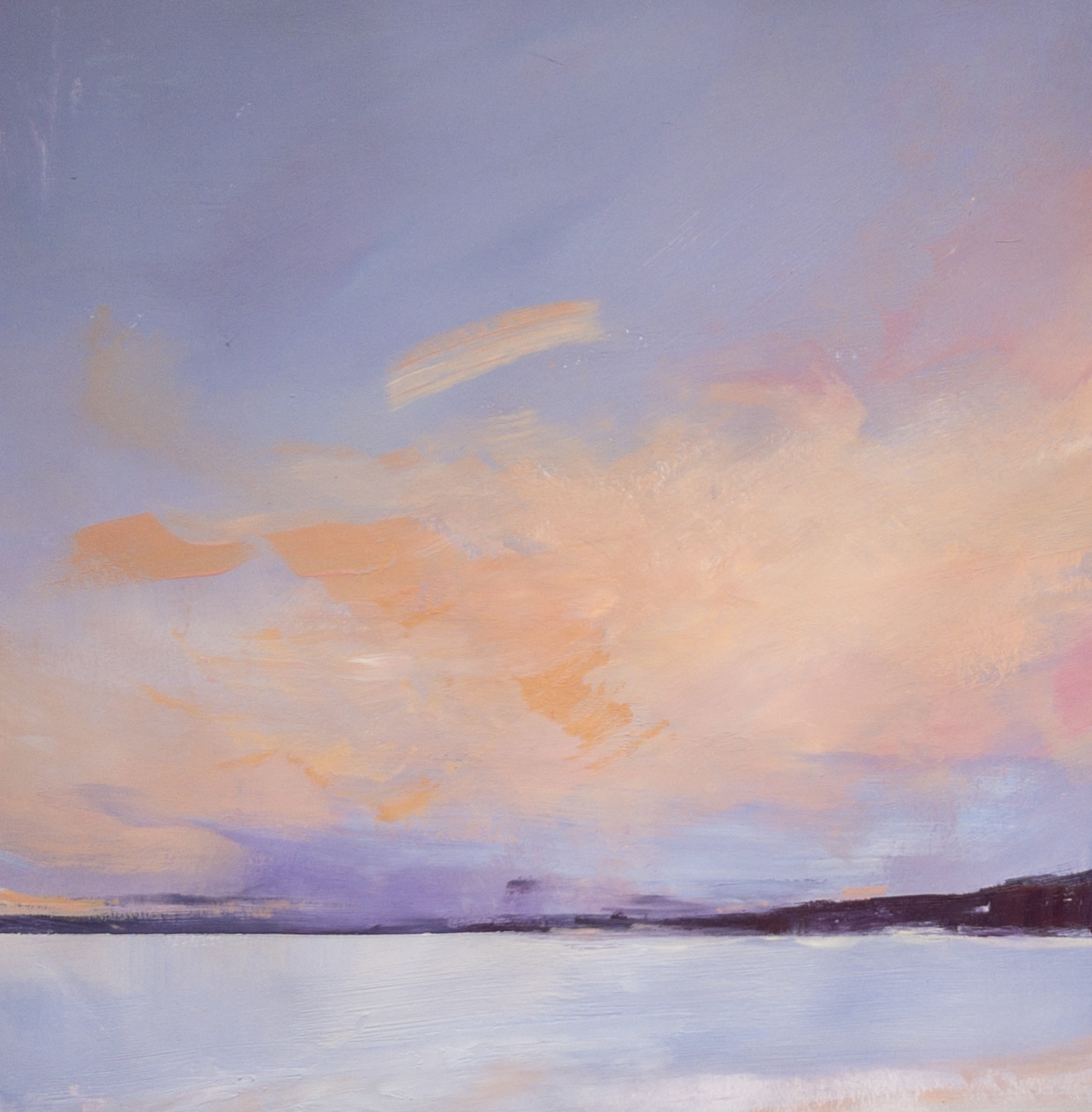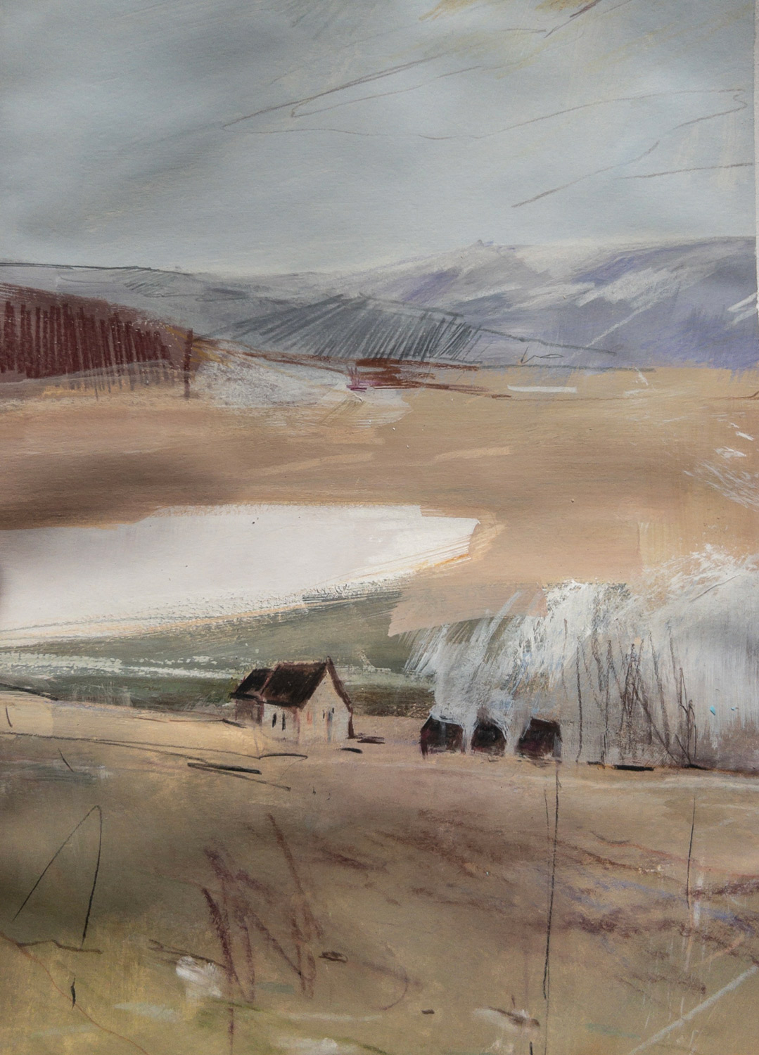 - Зимний минималистичный закат гуашью/темперой.